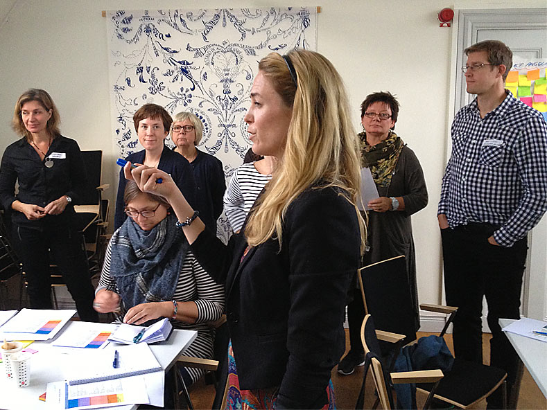 Besökarens perspektiv stod i fokus när Ylva Hammar från Riksutställningar ledde en workshop på Postmuseet. Här fick medlemmarna pröva på metoder att leda kreativa processer i dialog med exempel från samverkansprojekt mellan folkbildning och kulturarvsmuseer i Skåne.